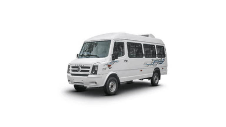 Force Urbania and various luxury buses ranging from 20 to 50 seats, both air-conditioned and non-air-conditioned.